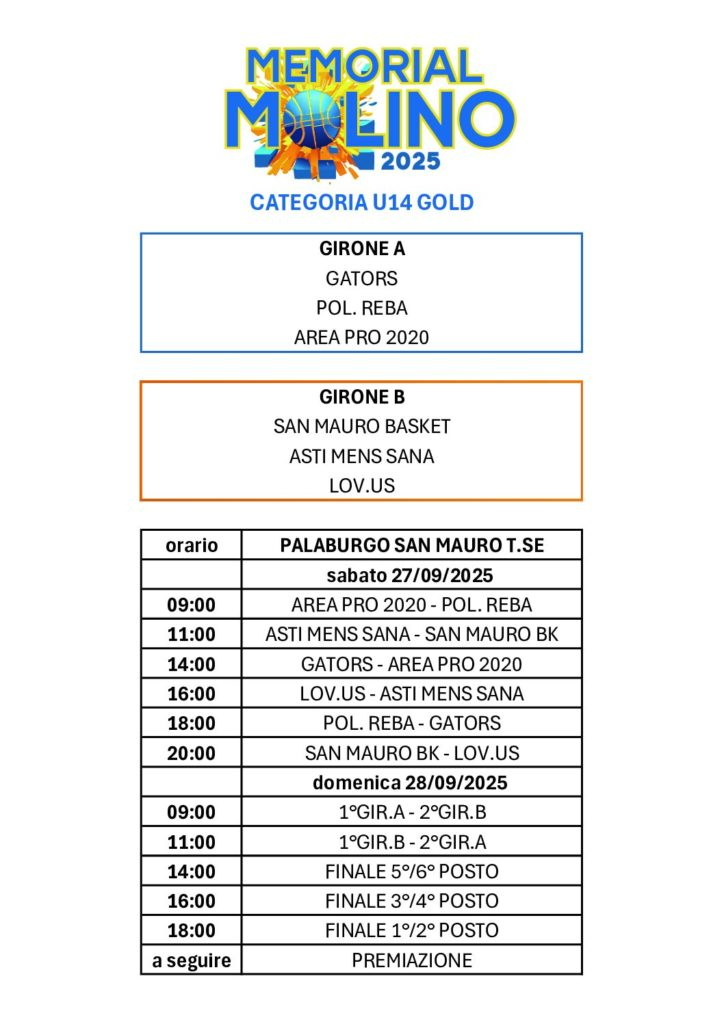 Un torneo di basket di alto livello cui partecipano 6 squadre Under 14 Gold , una festa dello sport all’insegna del fairplay per ricordare Gianluca, fratello del dottor Alberto Molino.